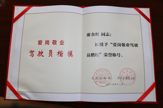 謝金紅,女,42歲,1992年參加工作,2001年從事公交駕駛員崗位。14年里她每天迎來(lái)送往著不同的乘客,重復(fù)著起步、停車(chē)、疏導(dǎo)乘客的工作狀態(tài)。在這個(gè)平凡的崗位上,她始終堅(jiān)守“為乘客服務(wù)是我的職責(zé),讓乘客滿(mǎn)意是我的追求”的諾言,用自己的行動(dòng)踐行著誠(chéng)信服務(wù)的宗旨,為乘客提供了溫馨的出行環(huán)境。 用愛(ài)心溫暖千萬(wàn)乘客 城市公交是服務(wù)群眾的一線(xiàn)窗口,謝金紅在平凡的工作崗位上用自己的一言一行展現(xiàn)服務(wù)之美。上了她的車(chē),溫暖與溫馨的感覺(jué)會(huì)一下子占據(jù)你的心底。 夏天來(lái)了,熾熱的陽(yáng)光射進(jìn)車(chē)廂,曬得乘客睜不開(kāi)眼,她買(mǎi)來(lái)窗簾為乘客遮陽(yáng)庇蔭;雨季來(lái)臨,細(xì)心的她又買(mǎi)來(lái)雨傘,以備乘客不時(shí)之需;暑期到了,精美的扇子掛在每個(gè)座位后面,讓乘客感受清涼;寒冬季節(jié),鋪上隔涼墊,為車(chē)廂扶手穿上親手縫制的把手套,給乘客以溫暖。謝金紅還將愛(ài)心提示語(yǔ)“讓座老幼,稍站何妨”、“你讓座、我讓座、困難時(shí)候會(huì)有座”等愛(ài)心提示語(yǔ)張貼到車(chē)內(nèi)。在她的車(chē)上,你會(huì)看到裝有針線(xiàn)包、急救包、塑料袋、面巾紙等急需物品的便民袋、環(huán)保垃圾筒、天氣預(yù)報(bào)板等,十米車(chē)廂猶如一個(gè)衛(wèi)生舒適的乘客出行的家。由于每天接觸的乘客數(shù)不勝數(shù),為了提供優(yōu)質(zhì)服務(wù),謝金紅認(rèn)真學(xué)習(xí)乘客心理學(xué),對(duì)不同年齡段的乘客采取不同的服務(wù)方法。經(jīng)常坐她車(chē)的乘客都說(shuō):“謝金紅服務(wù)態(tài)度好,說(shuō)話(huà)讓人心里感到暖和。遇到老年人,她都會(huì)等老年人上車(chē)扶好再啟動(dòng),還會(huì)提示乘客為我們老年人讓座;遇到青少年乘客,她總是提醒他們車(chē)進(jìn)站時(shí)不要擁擠、打鬧,避免危險(xiǎn);遇到外地乘客,她總是耐心的回答詢(xún)問(wèn),坐上她的車(chē)就像到家一樣! 用關(guān)心專(zhuān)遞人間真情 謝金紅的一言一語(yǔ),一心一意,一舉一動(dòng),一點(diǎn)一滴,都如春天般的溫暖,展現(xiàn)著她獨(dú)特的魅力。當(dāng)乘客在十米車(chē)廂遇到了困難,需要幫助的時(shí)候,她都會(huì)伸出援手,讓溫暖與真情遍及十米車(chē)廂。 一次,正值早高峰,車(chē)內(nèi)人多擁擠,謝金紅疏導(dǎo)乘客上車(chē),無(wú)意中看到有位女乘客臉色發(fā)白,滿(mǎn)頭大汗,謝金紅關(guān)心的問(wèn)她怎么了,女乘客回答道:“我暈車(chē),趕緊難受惡心,想要吐!敝x金紅忙從便民袋中拿出紙巾和塑料袋,安慰她說(shuō)不要緊,人吃五谷雜糧都會(huì)生病,吐在袋里,吐出來(lái)會(huì)好受些,女乘客接過(guò)塑料袋忍不住吐了起來(lái),之后謝金紅又遞過(guò)紙巾與水杯,伴著周?chē)澰S的目光和女乘客的連連道謝,謝金紅微笑著說(shuō)“沒(méi)什么”。 公交司機(jī)會(huì)經(jīng)常遇到有乘客丟失東西在車(chē)廂里,推己及人,丟東西的失主一定很著急,所以每當(dāng)謝金紅在車(chē)廂里撿到失物,都會(huì)用最快的方式聯(lián)系到失主。在路線(xiàn)上開(kāi)車(chē)時(shí)間長(zhǎng)了,那些經(jīng)常乘車(chē)偷盜乘客的不法分子的臉也有些熟悉了,只要見(jiàn)到他們乘車(chē),謝金紅就會(huì)大聲提醒乘客。2014年9月的一個(gè)星期天,謝金紅像往常一樣駕車(chē)從園林路從南向北行駛至219公園站時(shí),因?yàn)槭侵苣塑?chē)的人特別多。突然,幾個(gè)熟悉的面孔映入她的眼睛,她非常緊張,抬頭看了看反光鏡中的乘客們,他們絲毫沒(méi)有警覺(jué),懶散散的站著車(chē)廂里。眼看這幾個(gè)人就要上車(chē)了,她顧不上許多了,回頭向車(chē)廂內(nèi)大聲的說(shuō),請(qǐng)各位乘客注意了,請(qǐng)注意自己隨身攜帶的物品,以免丟失。在她的提醒下,乘客們都明白是怎么回事了。乘客的財(cái)產(chǎn)雖然保住了,但是讓她沒(méi)有想到的是小偷是一個(gè)團(tuán)伙,在她說(shuō)話(huà)的時(shí)候,車(chē)上就有他們的人了,因?yàn)樗奶嵝研⊥祩儧](méi)有得手,他們非常生氣,下車(chē)時(shí)對(duì)著她比劃,威脅她讓她少管閑事,她心里雖然怦怦亂跳,但是臉上絲毫沒(méi)有流露出來(lái),也許是她的無(wú)畏和正義,這伙人再也沒(méi)有出現(xiàn)在她的車(chē)上。 用細(xì)心鑄就安全屏障 憑借多年的駕駛經(jīng)驗(yàn),謝金紅在駕駛過(guò)程中總結(jié)出一看、二想、三觀(guān)察的駕駛經(jīng)驗(yàn):一看,是出車(chē)前要看傳動(dòng)螺絲是否松動(dòng),各種儀表表盤(pán)、機(jī)件是否完好;二想,是想嚴(yán)格執(zhí)行安全操作規(guī)程,想文明出行、安全禮讓?zhuān)蝗^(guān)察,是觀(guān)察運(yùn)營(yíng)線(xiàn)路的路面情況,觀(guān)察時(shí)間段客流變化情況,觀(guān)察不同乘客的乘車(chē)需求。憑借特有的細(xì)心,她練就出“眼尖、耳靈、手快”的駕駛技術(shù)。記得有一次她的車(chē)剛從站點(diǎn)起車(chē),突然有一對(duì)要過(guò)馬路的母女,從車(chē)前右側(cè)沖了出來(lái),憑借著多年的駕駛經(jīng)驗(yàn),她用最快的速度踩下了剎車(chē),全車(chē)乘客一片驚呼,就連站在車(chē)前距車(chē)體僅差分毫的母女倆也被嚇得臉色慘白驚汗