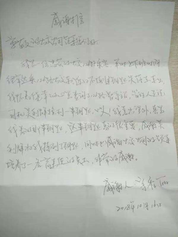 2018年10月16日,一公司三隊126線駕駛員吳立群在車上撿到一串鑰匙,交給當班調度,事后失主到調度室尋找,找到了自己的鑰匙,很是感謝,并送來感謝信一封表達自己的感激之情。