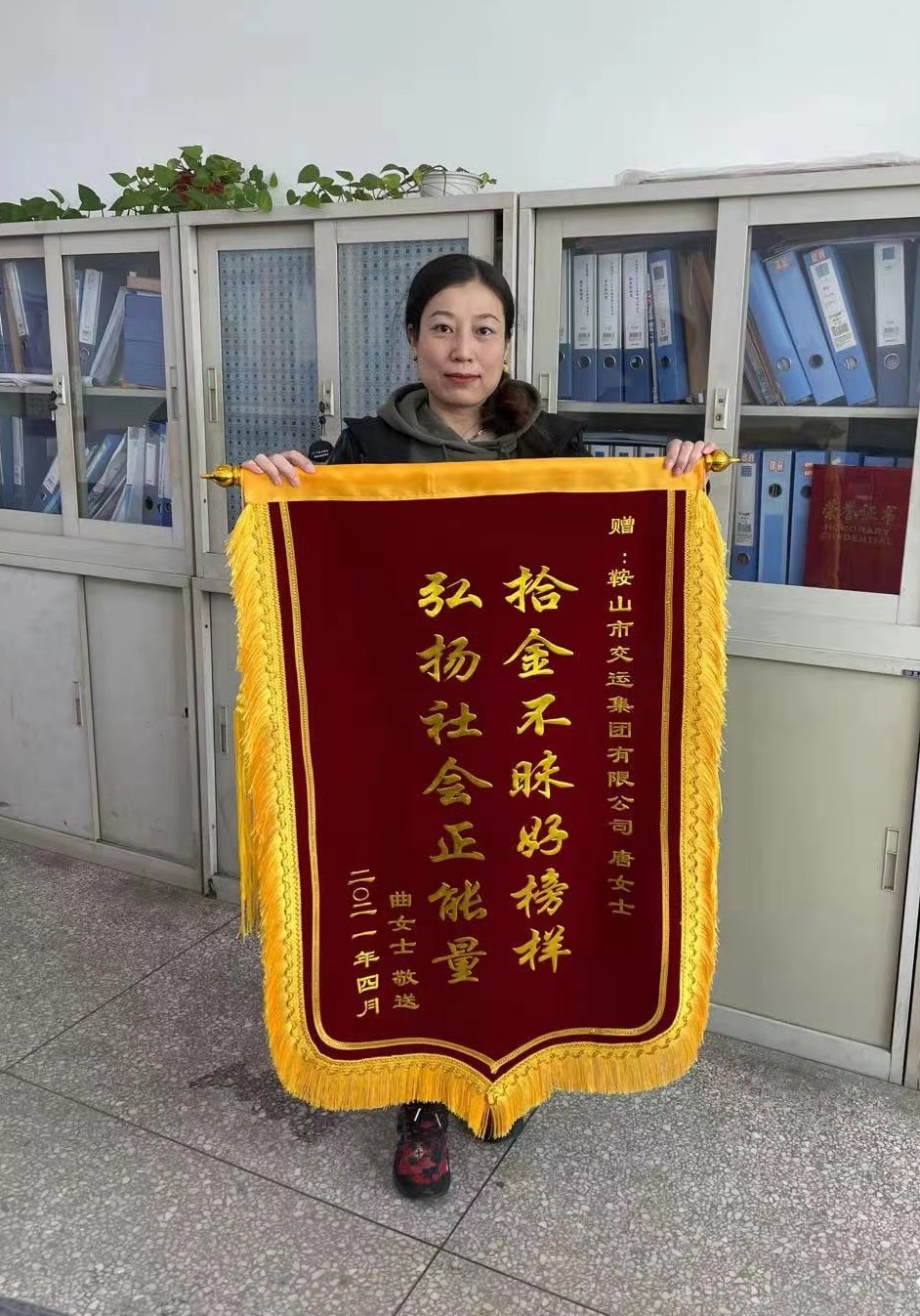 4月15日上午,市民曲女士帶刻有“拾金不昧好榜樣,弘揚(yáng)社會(huì)正能量”的錦旗,送到市交運(yùn)集團(tuán),感謝集團(tuán)員工“唐女士”第一時(shí)間里將拾到的價(jià)值萬(wàn)余元的蘋果12手機(jī)交還給她。 據(jù)失主曲女士介紹, 4月10日,她在勝利會(huì)堂參加一場(chǎng)培訓(xùn)會(huì),會(huì)議結(jié)束后,才發(fā)現(xiàn)把自己載有重要資料的蘋果12手機(jī)丟失了。除了手機(jī)本身的價(jià)值以外,手機(jī)內(nèi)還存有孩子高考的各種重要資料,一時(shí)心急如焚。她報(bào)著試試看的心態(tài),用別人的手機(jī)拔打自己的號(hào)碼,沒(méi)想到立即有人接聽(tīng),并表示馬上將手機(jī)送過(guò)來(lái)。見(jiàn)面后,曲女士再三追問(wèn)這位好心人的姓名,只了解到“好心人”姓唐,并一再表示無(wú)需感謝。曲女士再三表示誠(chéng)意,“好心人”也沒(méi)有留電話,只留了微信號(hào)碼。曲女士最終通過(guò)翻看其朋友圈,發(fā)現(xiàn)“好心人”是市交運(yùn)集團(tuán)員工。