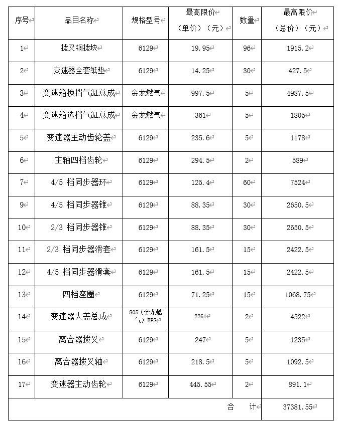 變速箱配件比價采購公告 一、采購內容