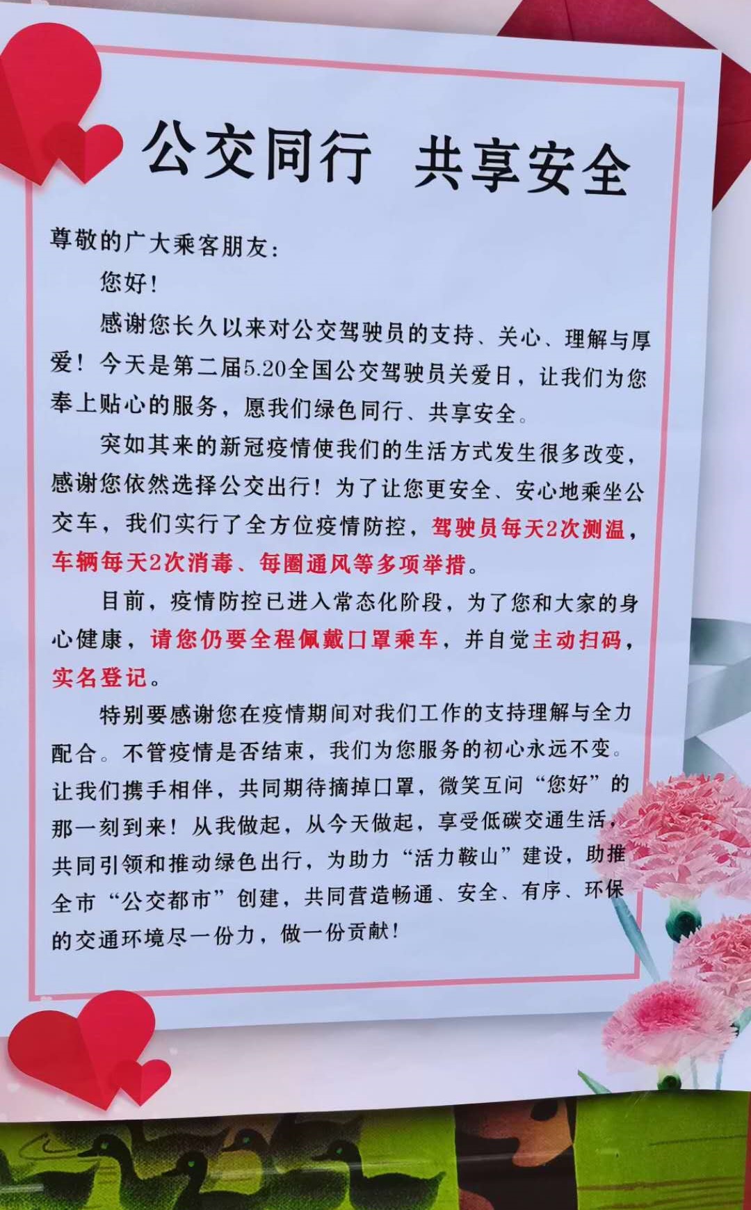 | 很多人都知道5月20日是諧音“我愛你”,但這一天還是全國第二個公交駕駛員關愛日。 鞍山公交駕駛員謝金紅根據(jù)自己20年的公交駕駛經(jīng)驗,首創(chuàng)“321斑馬線禮讓行人法”之后,越來 |